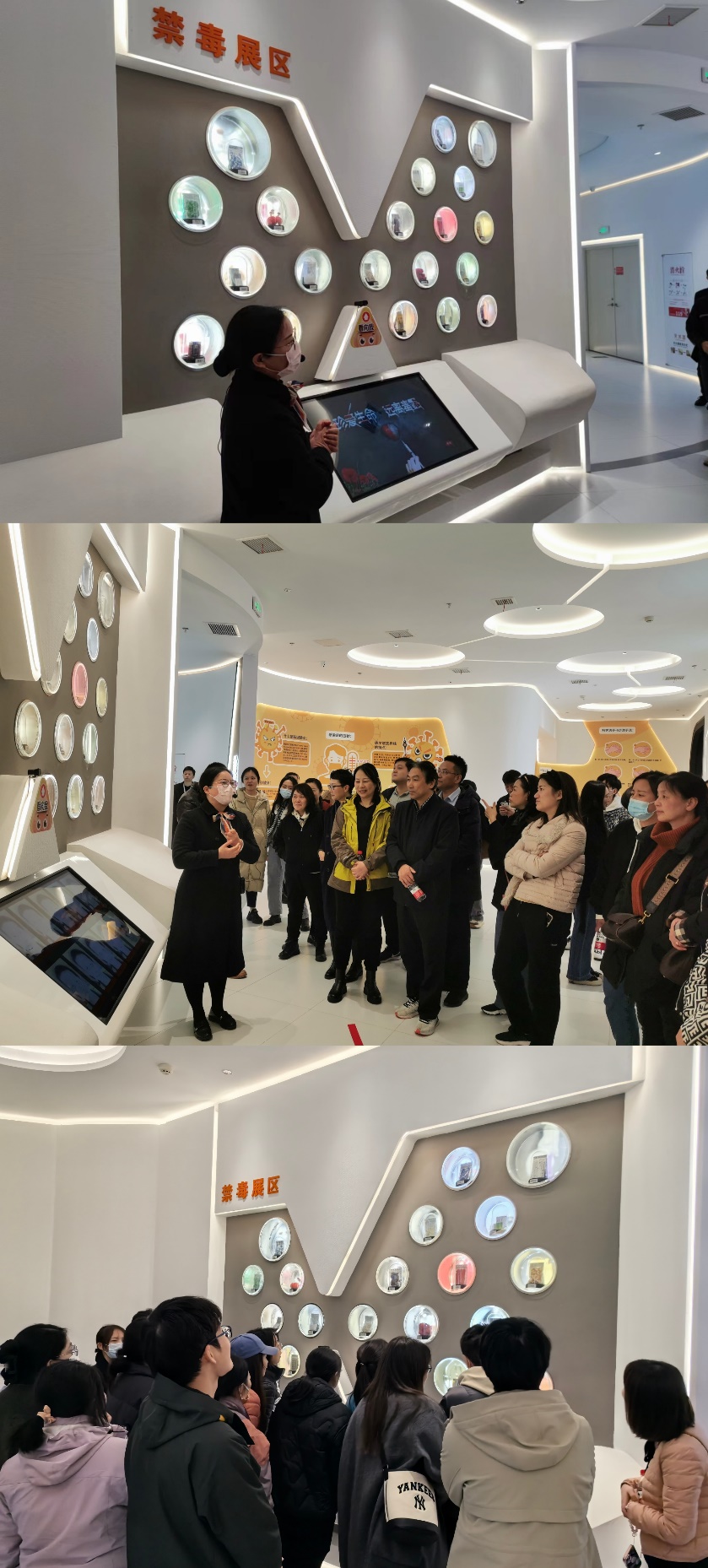 在禁毒展区中,讲解员向大家介绍了各种毒品种类,大家积极参与互动,通过拍照互动模拟吸食毒品后面貌变化过程,在模拟展示中给予大家深刻的禁毒警示。
