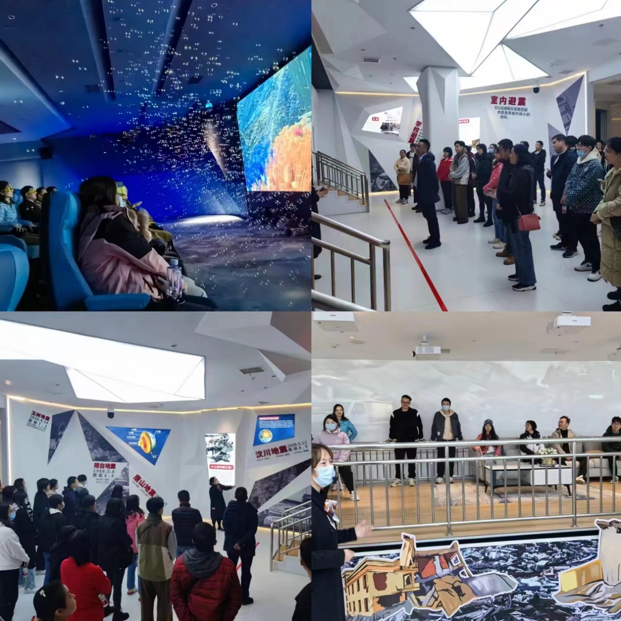 5D影院和地震体验区以第一视角的方式引领观众进入地震现场,吊灯晃动,房屋倒塌,桥梁毁坏以及360°摇晃的座椅、声光电风、气泡多种元素的融合,再次强化地震给人带来的动荡感,让大家身临其境感受到了自然灾害发生时的情形,学习自然灾害来临时,有效地预防及救护措施。