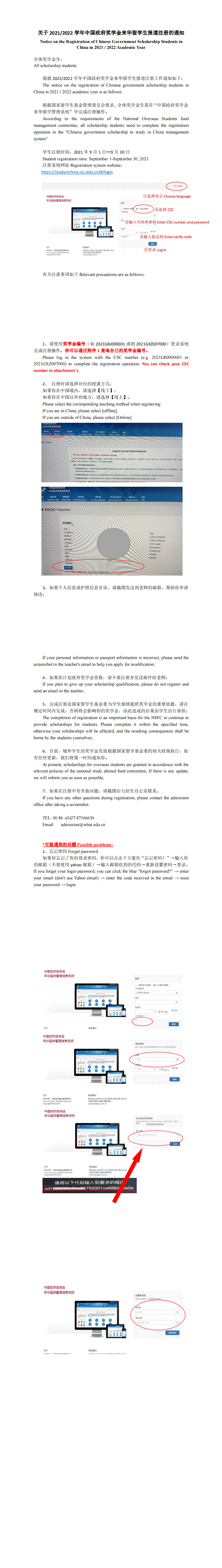 Notice on the Registration of Chinese Government Scholarship Students in China in 2021 / 2022 Academic Year关于2021/2022学年中国政府奖学金来华职工报道注册的通知