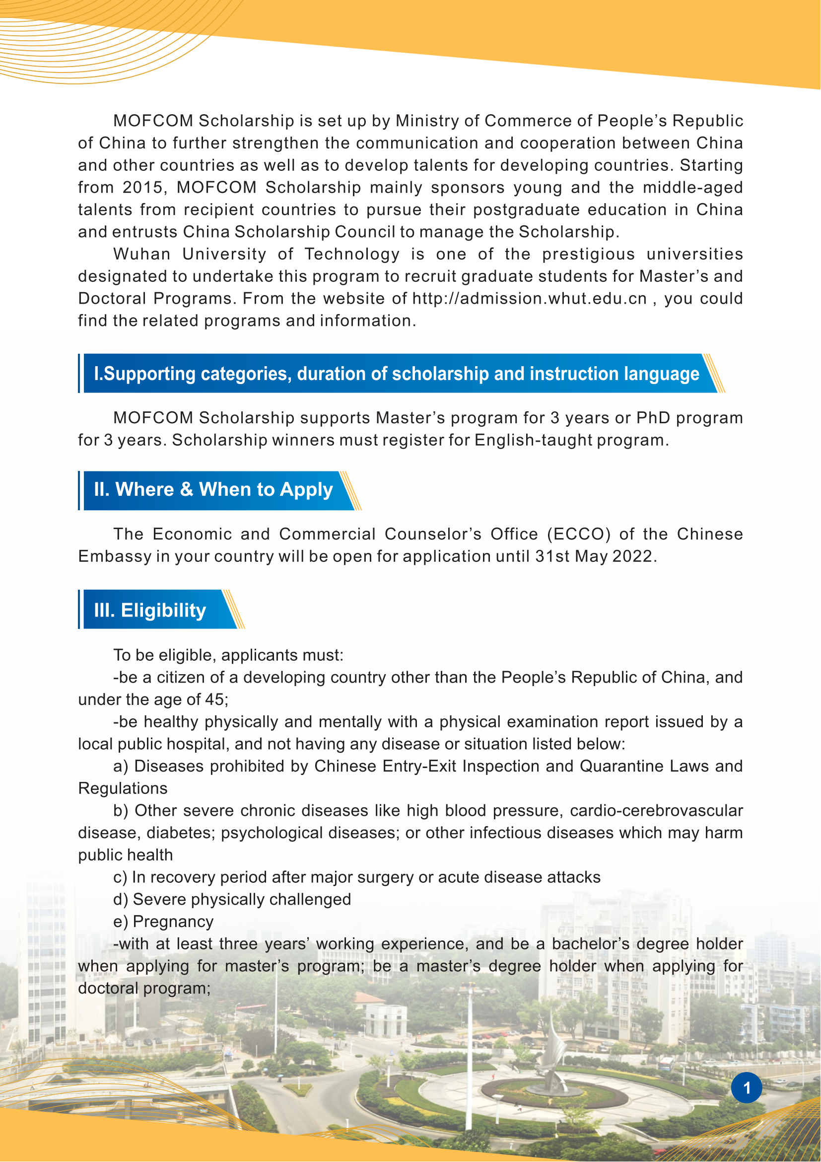 Application for Chinese Government Scholarship---Chinese University Program of Wuhan University of Technology (year 2021)