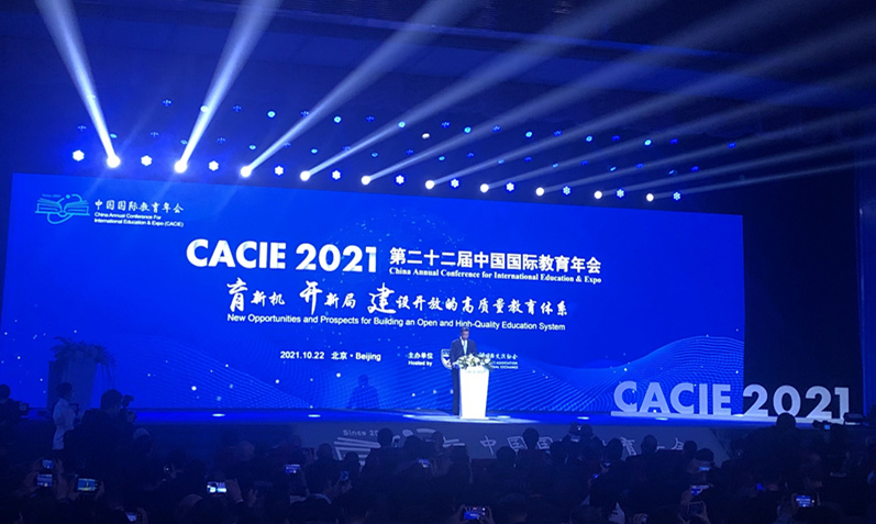 10月21至24日,由中国教育国际交流协会举办的第22届中国国际教育年会全体大会在北京国际会议中心隆重举行。本届年会以“育新机,开新局,建设开放的高质量教育体系”为主题,中国教育国际交流协会会长刘利民主持开幕式,中国教育部党组书记、部长怀进鹏、英国教育部常务次官苏珊·阿克兰-胡德(Susan Acland-Hood)、新加坡教育部部长陈振声、联合国教科文组织教育助理总干事斯蒂芬妮亚·贾尼尼(Stefania Giannini)作开幕式致辞。中国工程院院士、中国载人航天工程总设计师周建平,英国皇家工程院经理吉姆·麦克唐纳(Jim McDonald)作主旨发言。今年会副经理李凌教授及相关工作人员参加了本届年会。