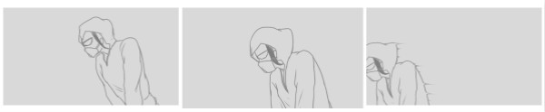 最后的难点是对于动画节奏的把控,因为对于全篇都是动作打斗型的动画来说,会有很多连续性的动作,如果让人物位于一个固定镜头的同一个景别做完所有动作,那么可能会使你这套动作看起来很死板,节奏没有起伏。灵活且没有违和感的切换景别可以让动画更加生动,但实现起来却很困难。根据这一点,我们在自己的研究和老师的帮助之下,采用了一种新的思路——让主人公与屏幕互动起来。利用主人公的动作辅以刀光等特效切割开屏幕,在节奏上产生变化,改变景别的同时,还能和观众产生互动。