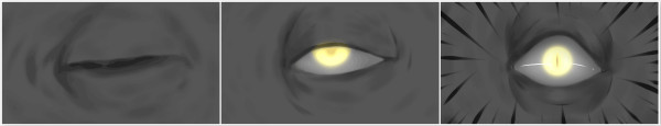 另一个难点则是如何让黑白灰动画的画面显得更丰富。我们的结论是在绘制时加入特效图层。在稍暗的底色上用发光或明暗图层处理特效,可以轻易地画出刀光、气流等一些动漫中常见的特效,并可以随心所欲让它变换,也能用来绘制眼里的寒芒,怪物的瞳孔等地方,比普通的平涂颜色更加鲜艳,是为动画增加亮点的好方法,在绘制后效果流畅的情况下可以酌情于重点部分添加。
