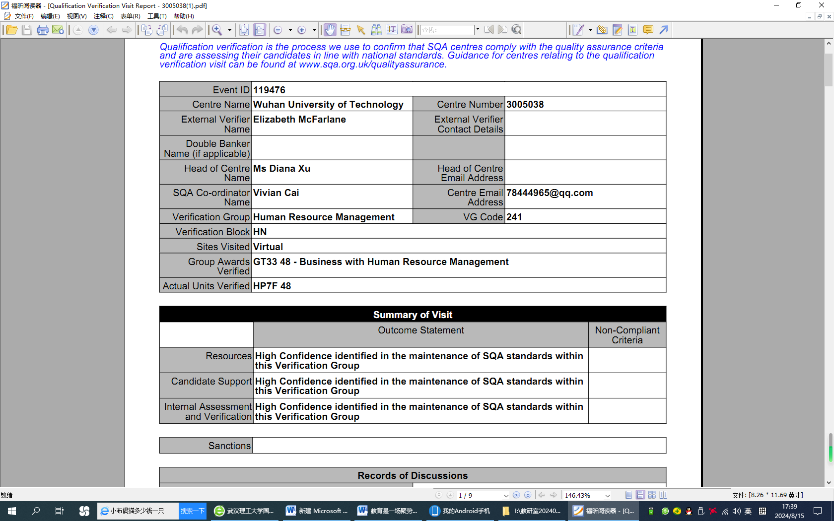 8月13日,英国苏格兰学历管理委员会(Scottish Qualification Authority,简称SQA)对公司SQA项目本学期外审工作进行了反馈。对于此次外审的《新兴技术商务基础》、《人力资源管理分等级考试一》、《纪律与申诉》、《商务沟通技巧》四门专业课,英方外审员对课程的教学资料、考核评价、员工支持、内审制度与流程等方面进行了严格审核,最终外审结果均获得“最高信任等级”(High Confidence)。