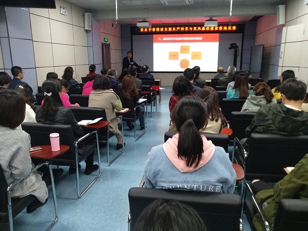 徐书记强调了充分认识教育系统全面从严治党的重要意义,分析了教育系统党风廉政建设与反腐败斗争的形势,进一步明确了扎实推进全面从严治党与党风廉政建设的要求,并带领大家进一步学习了党章、中国共产党廉洁自律准则、中国共产党纪律处分条例、中国共产党问责条例等党章党纪党规,强化党的意识和廉洁自律意识。徐书记还详细讲解了国教学院廉政风险防控体系建设情况。