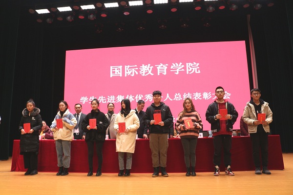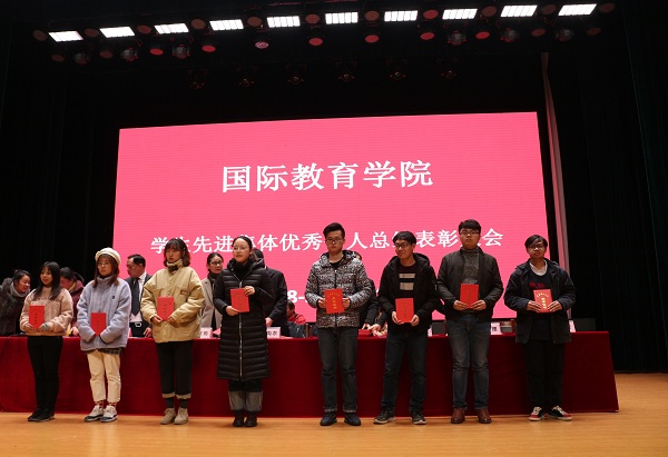 与会领导为获奖的先进集体和优秀个人颁奖。至此,今年会员工先进集体优秀个人总结表彰大会在校歌合唱声中圆满结束。