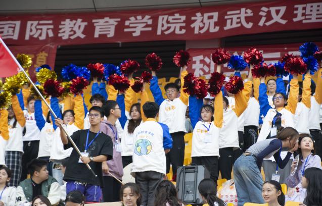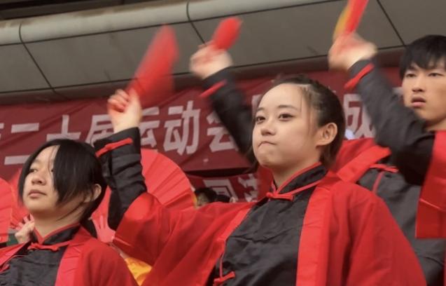 运动场上,几多健儿摘金夺银;运动场外,啦啦队员加油助力。“融汇中外,面向世界,国教师生,共创佳绩,勇往直前,乘风破浪,团结奋斗,共创辉煌!”激昂的鼓点,整齐的口号,颇有气势的扇子舞……不仅为每一位运动健儿们加油助威,还充分体现了国教同学的集体荣誉感与凝聚力。运动场上与场外的每一个身影,都是我们给青春最好的献礼,共同绘就了国教学院此次运动会的精彩画卷。