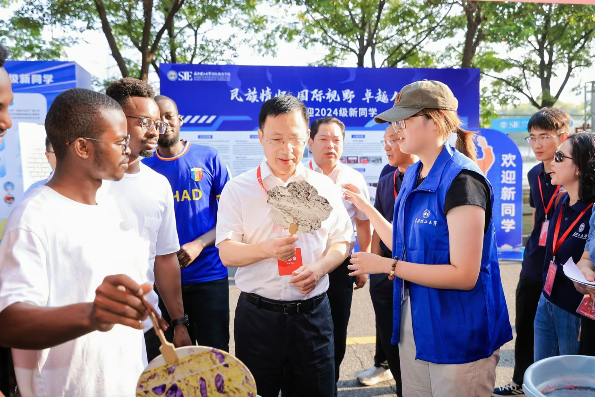 公司党委书记信思金、党委副书记孟芳兵在相关职能部门负责人的陪同下,来到学院迎新点,详细了解新生报到情况,并向工作人员和志愿者们表达了亲切的问候。他们还在志愿者的介绍下体验了制作漆扇的活动,并与现场师生亲切合影,留下美好瞬间。