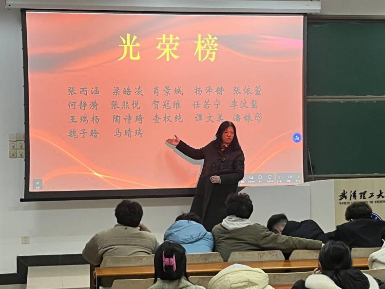 在开学第一课接近尾声之时,班主任李菲老师公布了上一学期期末光荣榜名单,他们都是上个学期期末考中综合成绩的名列前茅者。通过列举同学们身边的优秀分子,进一步激励同学们努力学习,追求卓越。班主任李菲还详细讲解了学院有关“雅思奖励制度”和“校级院级荣誉评选标准”以及“奖学金申请标准”,进一步激励同学们以努力学习与工作养成的硬实力赢取属于自己的荣誉和奖励,与现场同学们引起强烈共鸣。