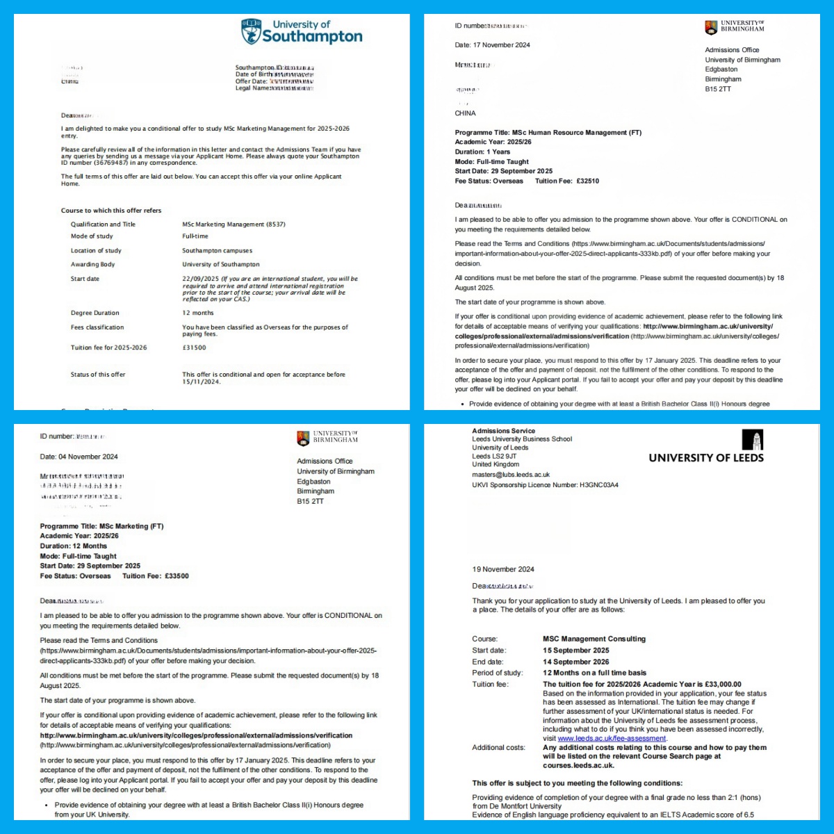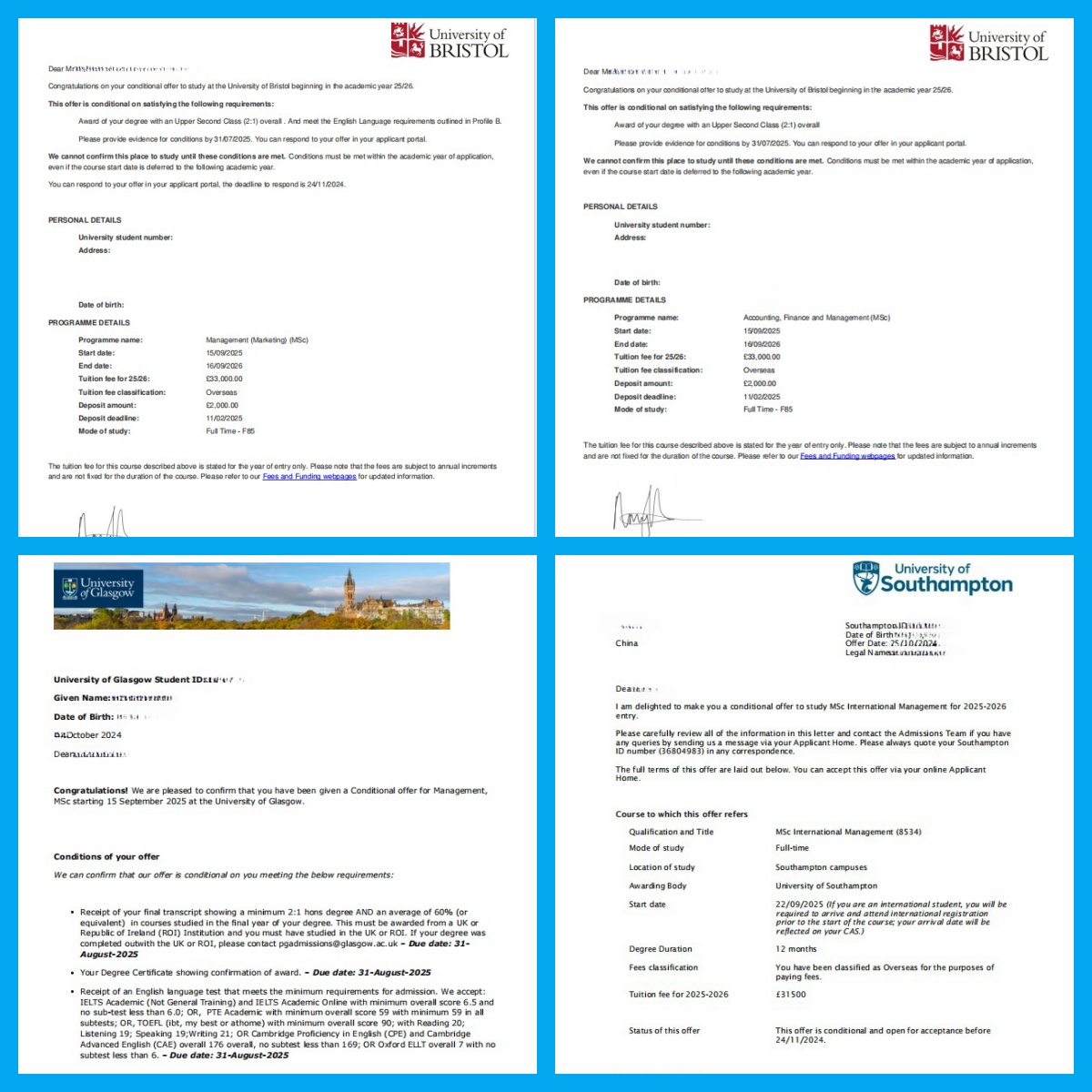 近日,公司众多2021级SQA项目的员工从海外高校向学院发来捷报,分享他们收到全球百强名校OFFER的喜悦。如周同学、成同学等同学分别收到英国布里斯托大学(2025年QS世界大学排名第54位)、格拉斯哥大学(2025年QS世界大学排名第78位)、伯明翰大学(2025年QS世界大学排名第80位)、南安普顿大学(2025年QS世界大学排名第80位)、利兹大学(2025年QS世界大学排名第82位)等全球知名高校的硕士录取通知书。