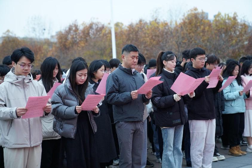 接着,全体师生跟随马程远同学开展宪法晨读,展现青年勇担使命、学习法治文化的坚定理想。继承再发扬,立志方能立行,此次晨读活动引导师生学法、守法、懂法,以坚定脚步踏着中国特色社会主义法治道路前进。