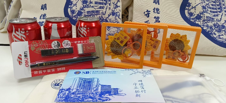 活动现场,学院为考研员工准备了考研加油大礼包,内含一套考试相关文具、文件袋、帆布袋、“一举夺葵”饰品、一张“所有的汗水都会有收获,所有的期许都需要拼搏”祝福明信片以及印有考研祝福语的可口可乐。让同学们在寒冬中感受到了浓浓的暖意和学院的殷切期望。