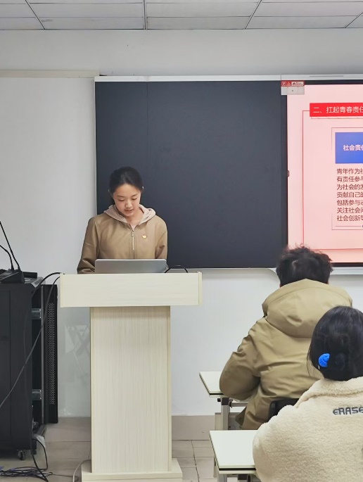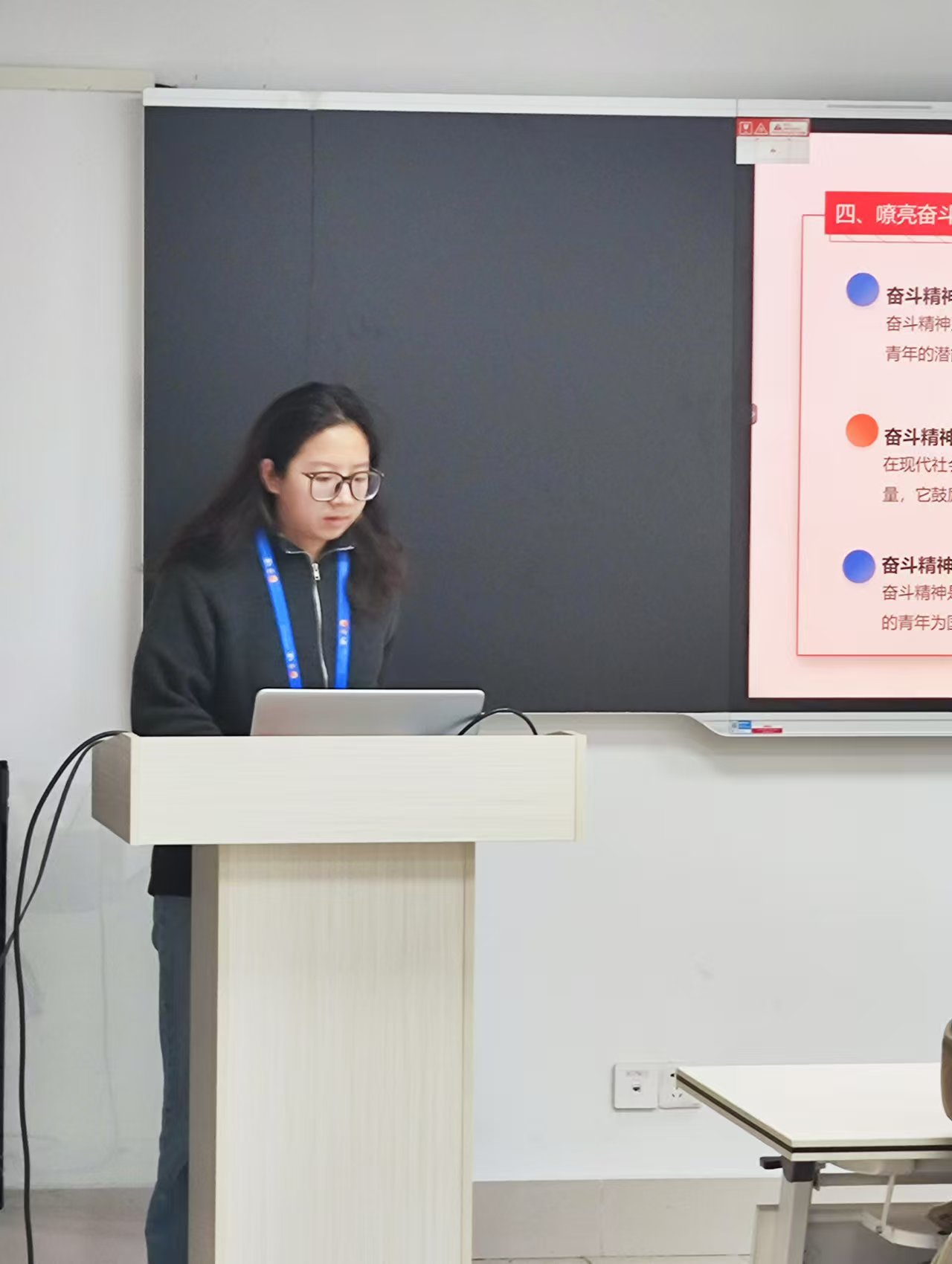 随后,组织部负责人刘彦呈讲述了奋斗精神作为中华民族的传统美德,在现代社会依旧激励着青年追求卓越、实现自我价值,她鼓励青年根据自身实际制定可行梦想,通过持续学习和实践努力实现梦想。