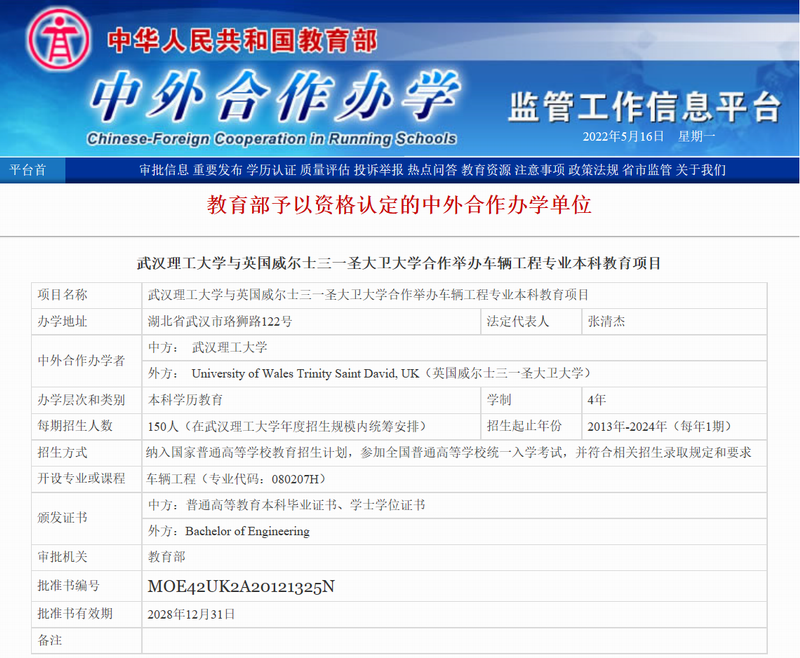 【项目批文】中英车辆工程本科项目批文