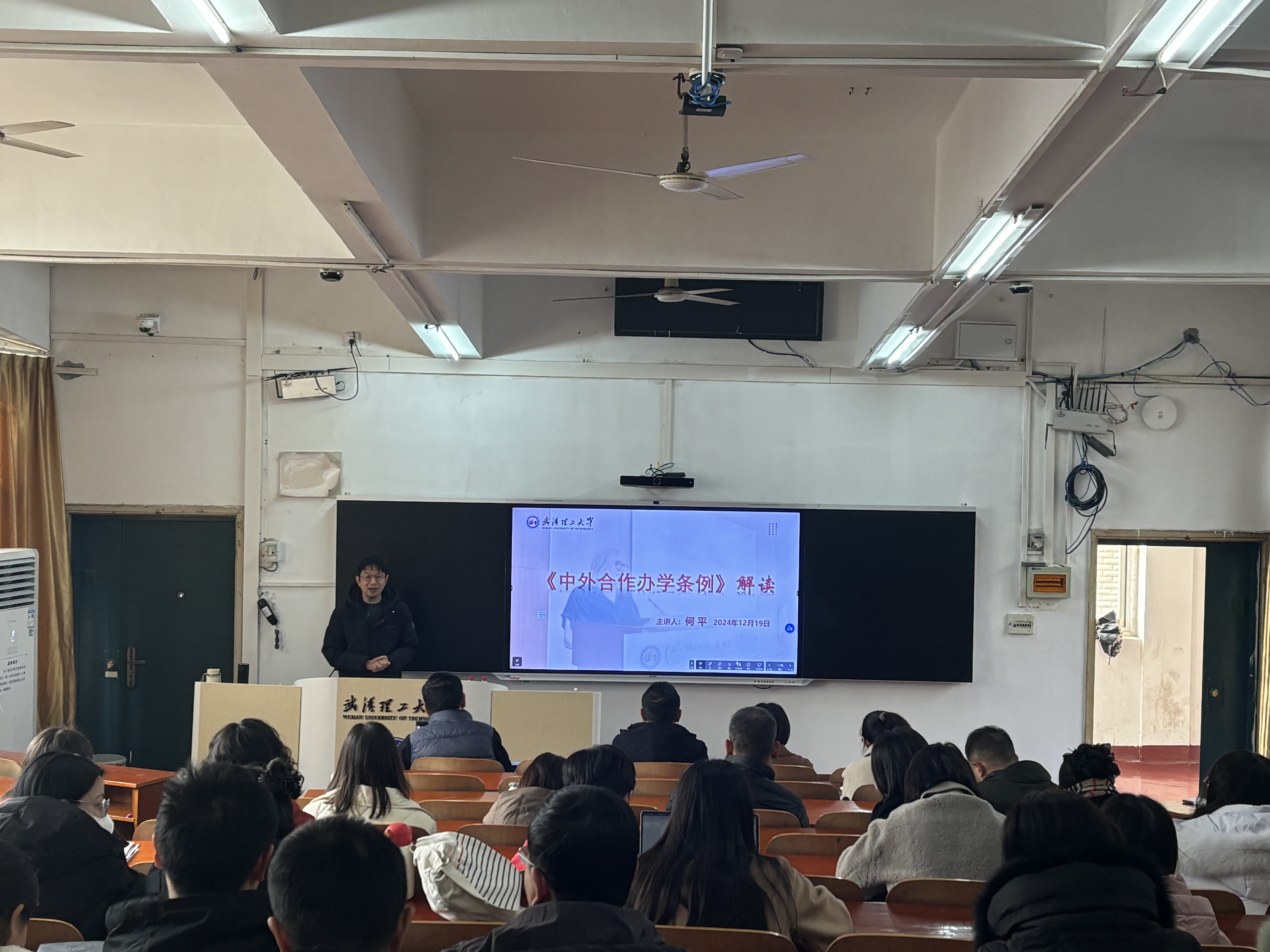 首先,法学与人文社会学院副经理何平作题为《中华人民共和国中外合作办学条例》解读的专题讲座。何经理从条例出台背景、主要内容、特点分析以及存在问题和优化思路四个方面不同角度深入探讨分析了《中华人民共和国中外合作办学学条例》,讲座既有政治理论高度,又有实践指导深度,具有很强的指导性、针对性,帮助与会教师全面理解了这一政策框架,对学院规范办学、依法管理、促进发展提供了思路。