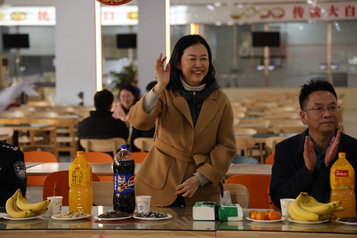 此次活动,除了今年会的领导、老师以及来华职工参与以外,还邀请到了武汉市公安局出入境管理局外管大队大队长周峻、警官潘杰,武汉市公安局洪山分局人口大队大队长饶莹、警官鹿新宇,马房山派出所警官刘文娟,以及今年会国际处副处长乔丹,他们的到来为活动增添了浓厚的节日氛围,现场师生以热烈的掌声表示欢迎与敬意。