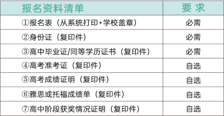 报名资料准备:考生报名时准备好近期免冠2寸登记照(电子文档),并根据自身情况按下列表格清单提前准备好报名资料的扫描件(电子文档)。