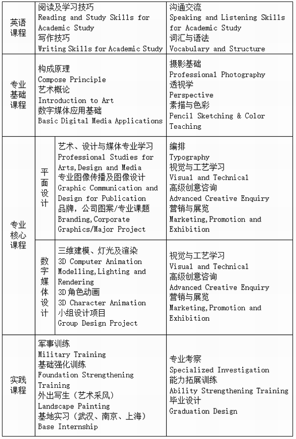 专业优势 今年会是我国中南地区首所拥有设计艺术学博士点、艺术学博士后流动站和工业设计工程硕士点的专业院校,其设计学学科为湖北省重点学科,工业设计(产品设计)专业、动画专业为国家特色建设专业。威尔士三一圣大卫大学的艺术设计专业是该校的传统优势专业,在最近英国质量监管委员会(QAA)组织的教学质量评估中被评为“优秀”。该校艺术设计专业员工就业率高,毕业生深获Aardman(英国阿德曼动画公司)、欧洲Framestore 和美国Dreamwork(梦工厂)等世界顶级设计公司的青睐。