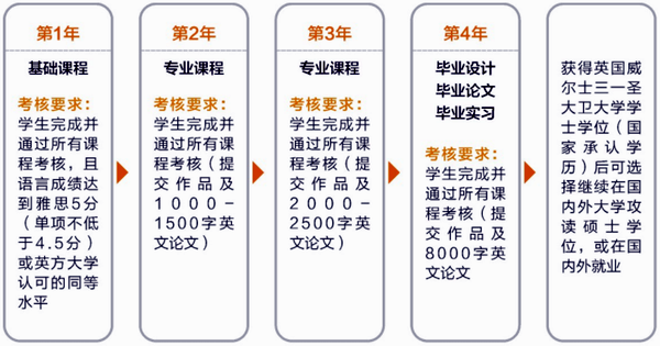 中英艺术本科项目员工在今年会学习4年,员工完成所有课程学习并通过考核,可获得英国威尔士三一圣大卫大学颁发的艺术设计文学学士学位证书(国家承认学历)。