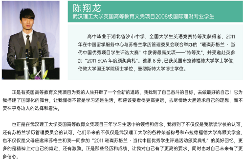 质量保证  今年会资深教师、外籍教师及海外留学归来的博士、硕士构建起优秀的教师队伍,开展双语教学及全英文教学。严格按照中国(教育部)留学服务中心、英国苏格兰学历管理委员会的有关规定对教学环节进行监督管理,建立了完善的质量保证体系,确保了教学质量。