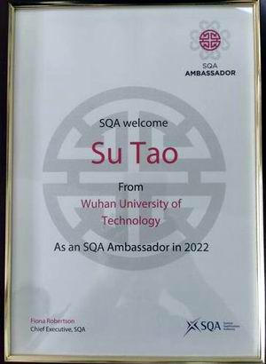 2022年全国“SQA理想大使”评选结果揭晓,公司英国高等教育文凭项目2019级苏涛同学荣获“SQA理想大使”称号。