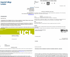 终获帝国理工学院、伦敦大学学院、