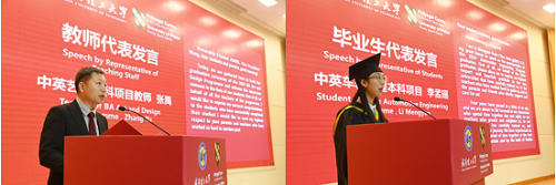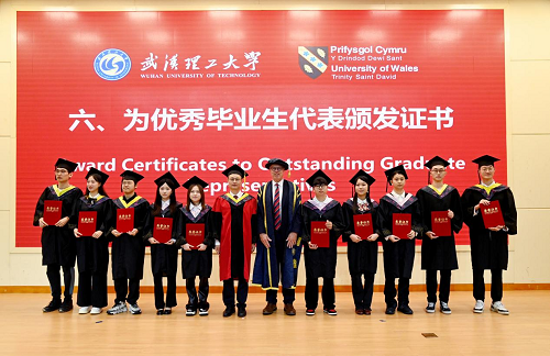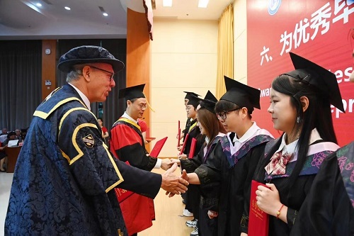 在欢快的乐曲声中,王发洲副董事长、Gwilym Dyfri Jones副董事长为优秀毕业生代表颁发证书并为毕业生授予学位。