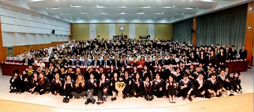毕业典礼结束后,与会领导、嘉宾与全体毕业生合影留念。