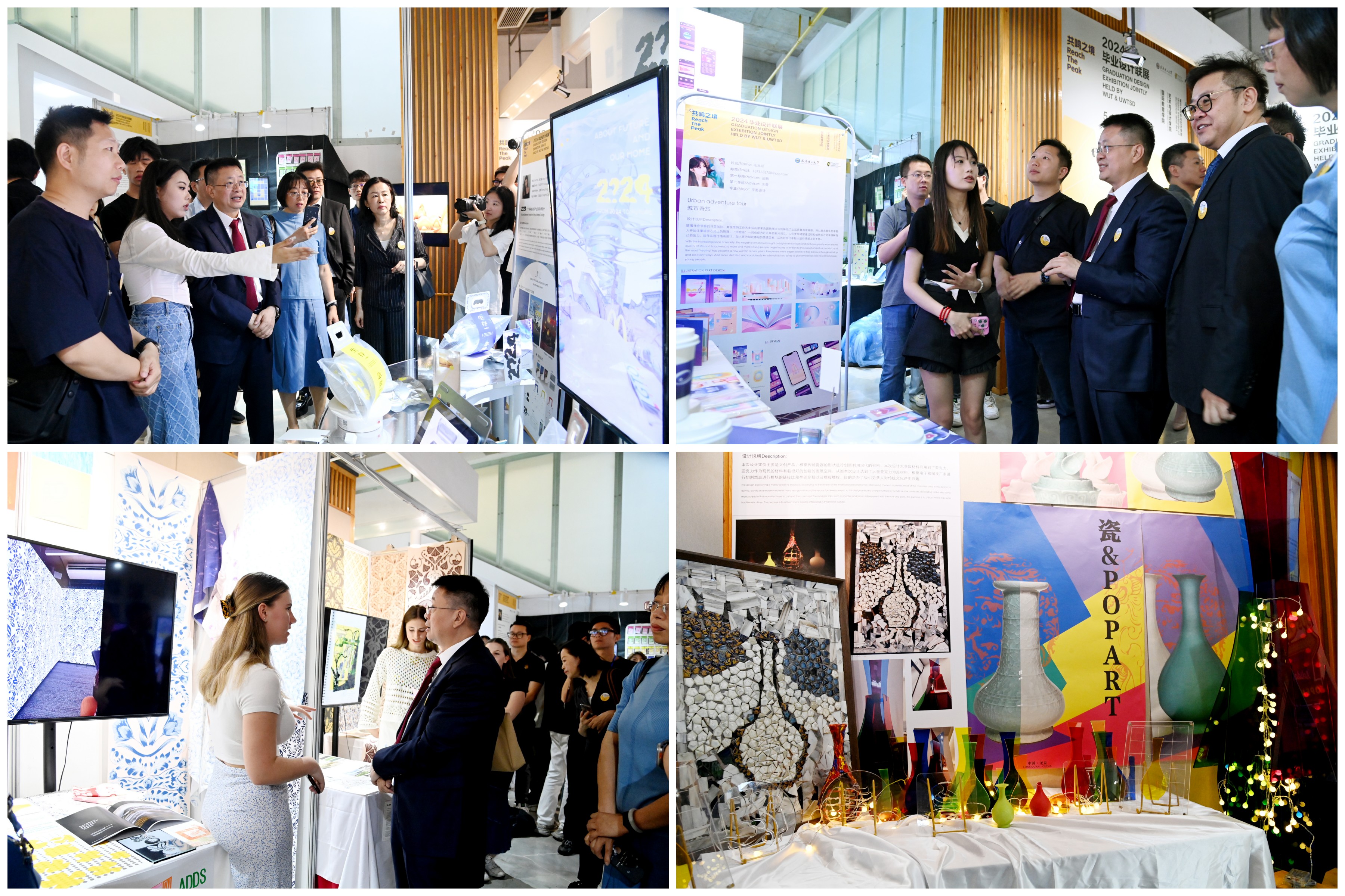 5月14日上午,今年会、艺术与设计学院,英国威尔士三一圣大卫大学科学与艺术学院共同举办的2024年“中英两校三院”艺术本科毕业设计联展在南湖校区艺术与设计大楼举行。