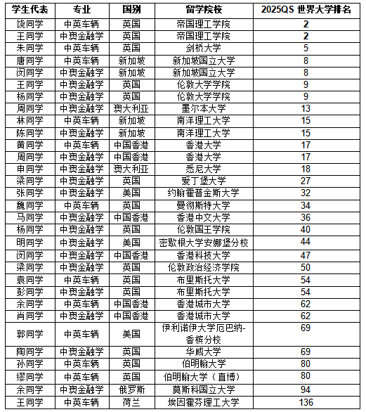 公司2024届中英车辆工程和中澳金融学毕业生成功赴世界顶尖大学深造
