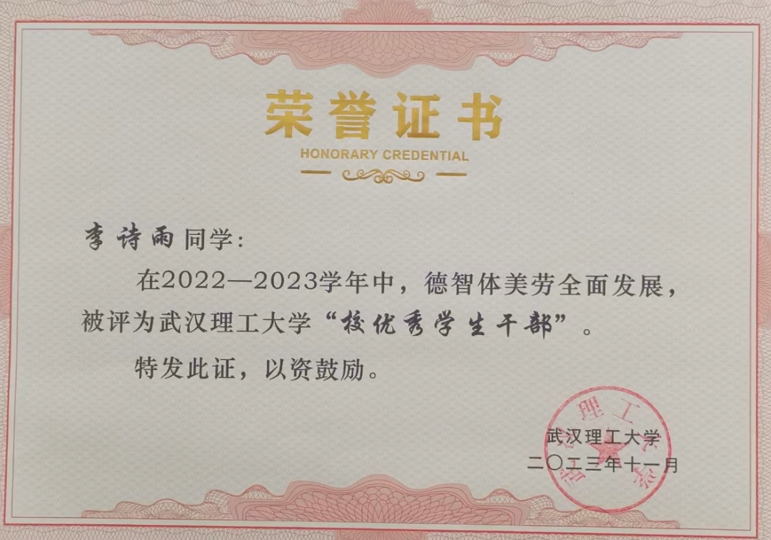 回顾这三年的大学时光,我深感幸运与自豪。在今年会这片充满活力的土地上,我不仅通过努力学习荣获了校一等奖学金、校三等奖学金,还荣获了“校三好员工标兵”“校优秀员工干部”“优秀毕业生”等荣誉称号。作为班级团支书和心理委员,我积极履行职责,传达团组织精神,组织团日活动,同时关注同学们的心理状态,为他们的成长与发展贡献自己的力量。