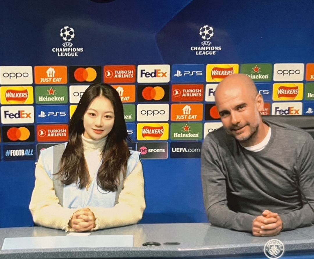 (赛场提供的与瓜迪奥拉教练的合成纪念照)