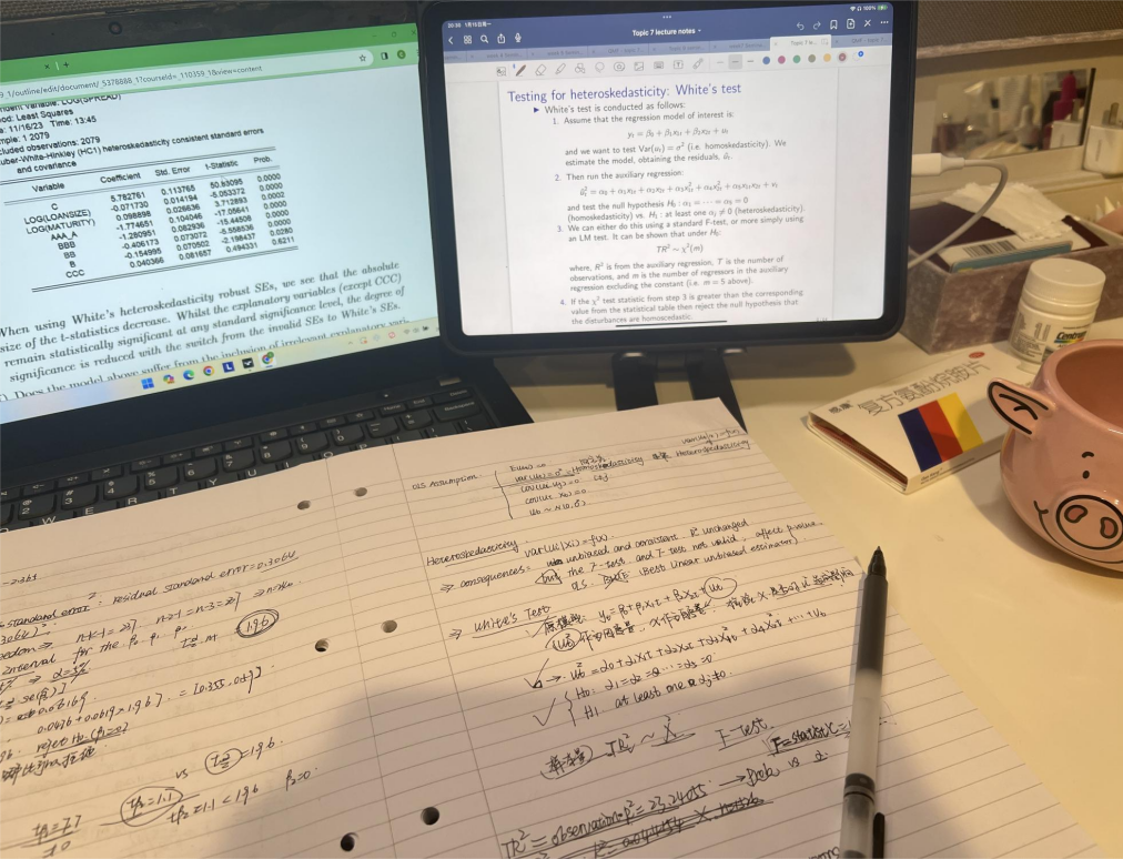 然而,留学之路并非坦途,同样布满了荆棘与坎坷。数不清的演讲和看不完的文献,难搞的小组活动以及不被理解的困境,难啃的专业知识和学术名词,被嘲笑和忽视都是常事。在那些艰难的日子里,我常常忙得焦头烂额,甚至连哭泣的时间都没有,只能在学习的间隙任由泪水涌出。此时此刻,我是多么渴望能有一位老师,在我濒临崩溃的金融计量学面前拉我一把,让我不再像只无头苍蝇般在看不懂、理解不了的数学符号里苦苦挣扎。