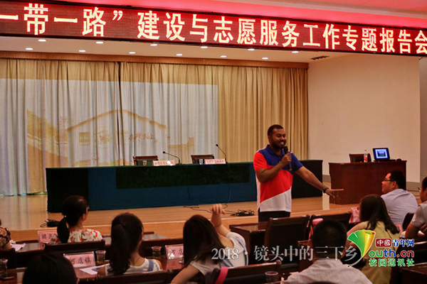 加力布分享对“一带一路”政策的研究成果。中国青年网通讯员 张宸赫 摄