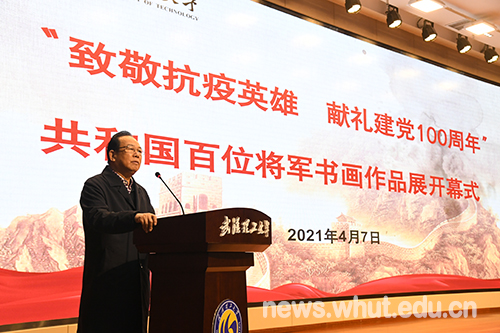 开幕仪式上,公司党委书记信思金表示,此次“致敬抗疫英雄 献礼建党100周年”共和国百位将军书画作品展具有极高的艺术价值及文化价值,是公司开展党史学习教育、赓续中国共产党精神血脉的具体举措,是弘扬伟大抗疫精神、讲好“思政大课”、深化新时代爱国主义教育的重要实践。全校师生要把握此次“特殊课堂”的学习机会,进一步补足精神之钙、筑牢信仰根基。他同时表示,学校将继续加大“文化校园建设”力度,进一步增强学校文化软实力、进一步巩固高校文化阵地,确保为学校各项事业发展提供强有力的精神动力和思想保证。