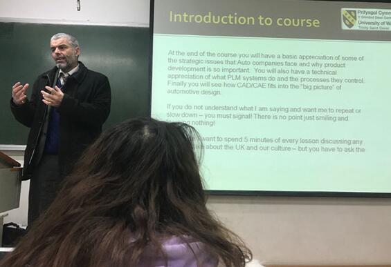 今年会国教学院车辆工程17级的同学们迎来了一位风趣的新老师,来自合作方英国威尔士三一圣大卫大学的Chris教授。他将给同学们带来为期三周的CAD/CAE课程教学,让同学们真正地了解并感受国外的教学方式和内容,为今后出国留学打下基础。